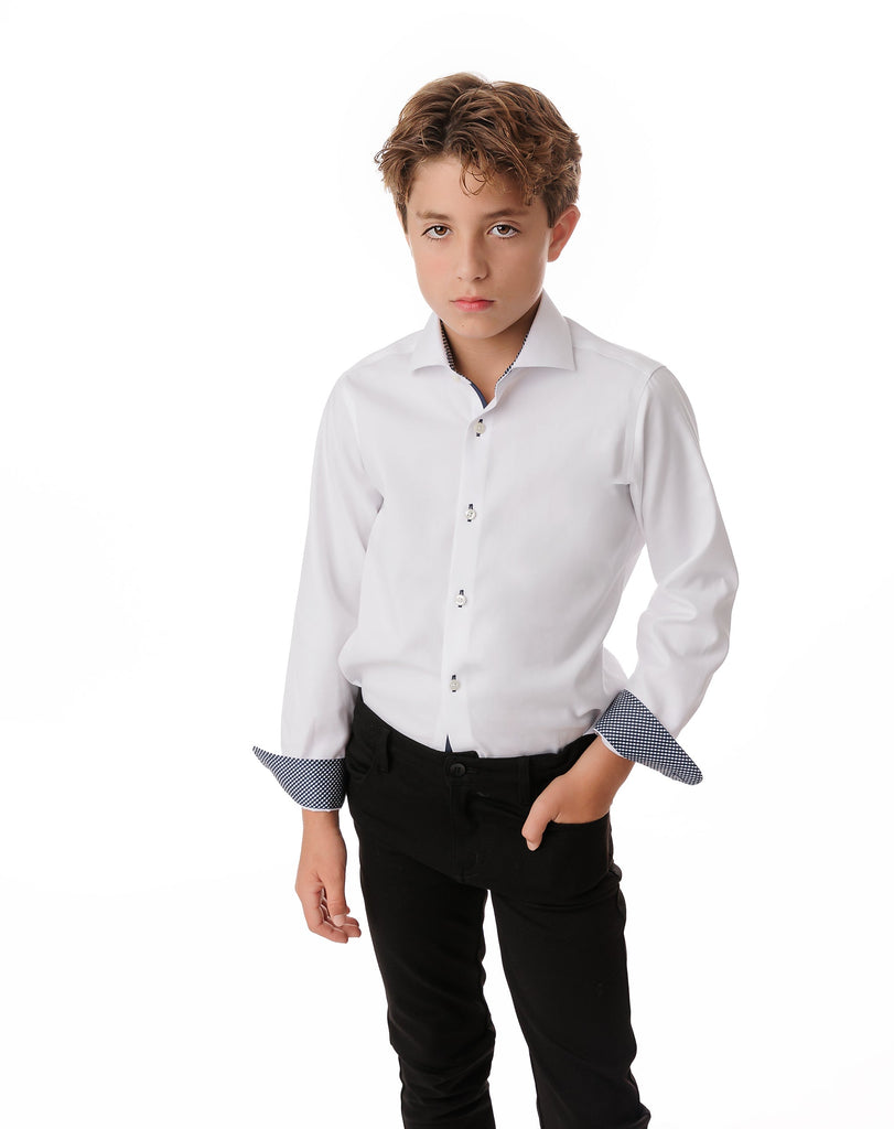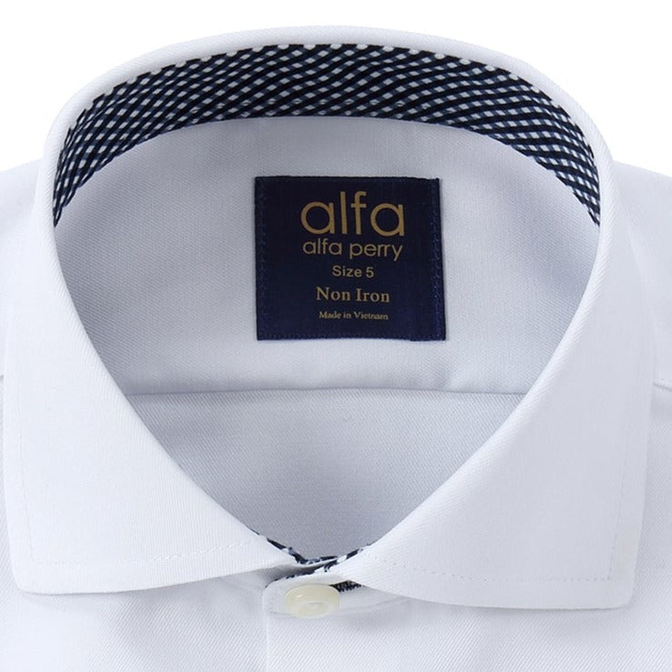 White Non Iron Shirt - Navy and Black Basketweave Contrast Details