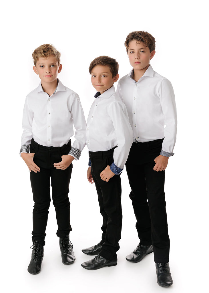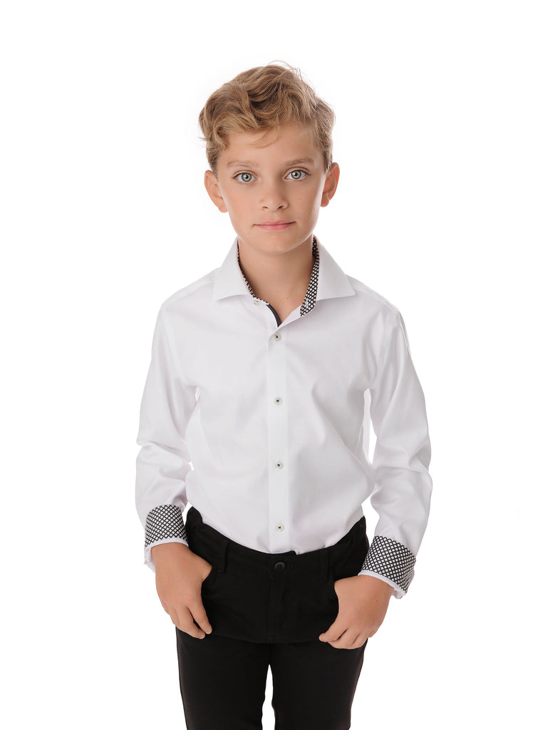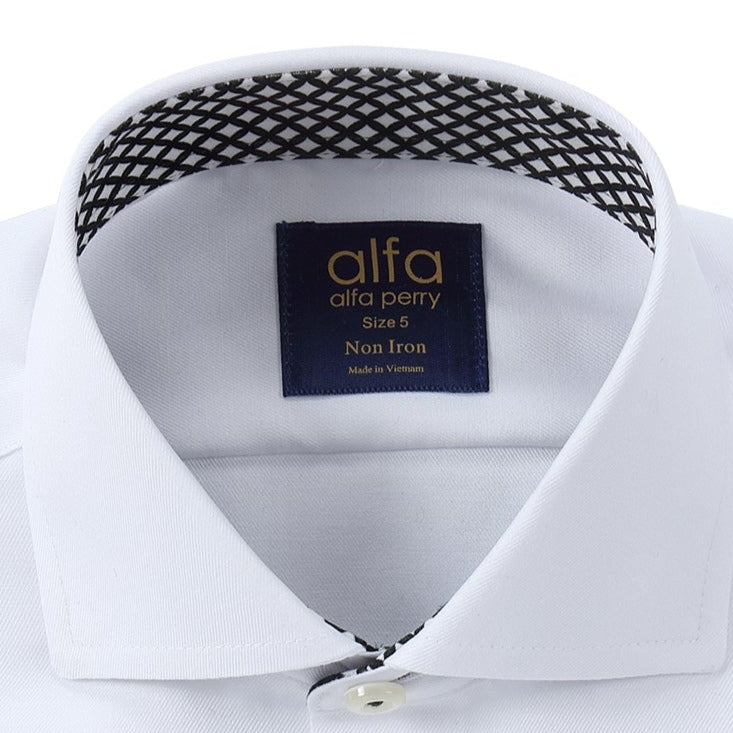 White Non Iron Shirt - Black Lattice Contrast Details