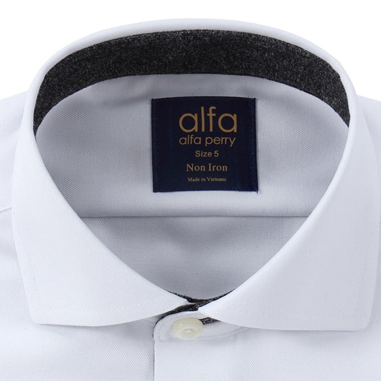 White Non Iron Shirt - Black Mottled Contrast Details